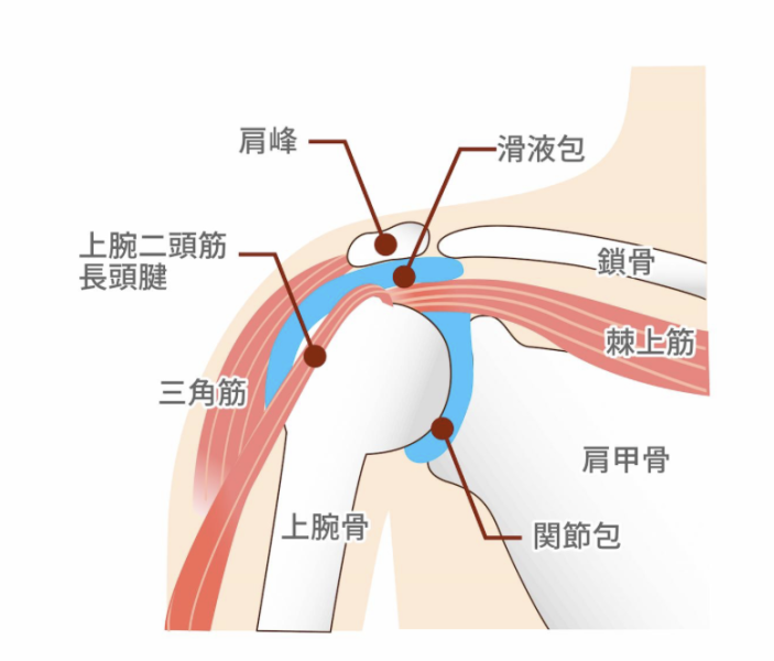 • 滑液包:摩擦を減らすクッション役。炎症が起きると痛みが出やすい。